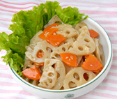 Japanese style prepared vegetables (burdock, lotus roots, spinach, etc)
